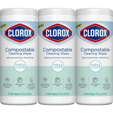Clorox Compostable Cleaning Wipes All Purpose Wipes Unscented Free Clear 35 Count Each Pack Of 3 Walmart Com